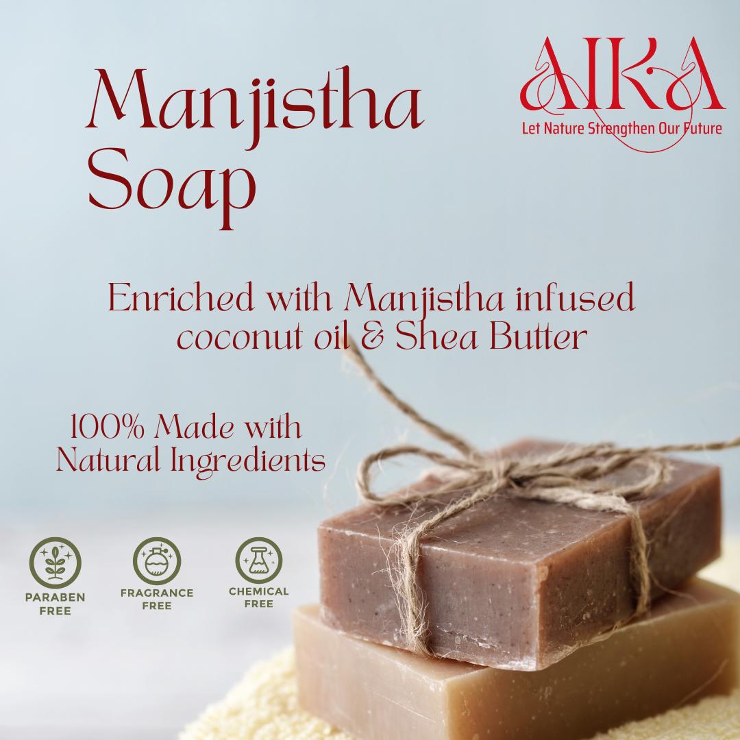 Manjistha Bath Bar contains Manjistha root powder, providing the best combination for normal to oily skin. It also improves skin complexion and reduces dark spots. This helps in reducing acne, and pimples and also helps in controlling sebum production